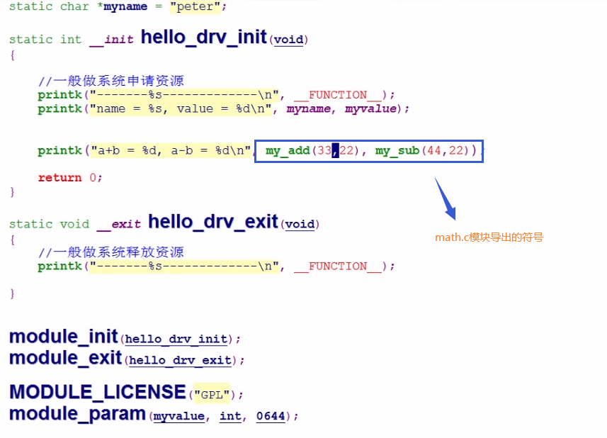 math.c导出函数(符号)给其他函数用的,不需要有函数装载卸载声明